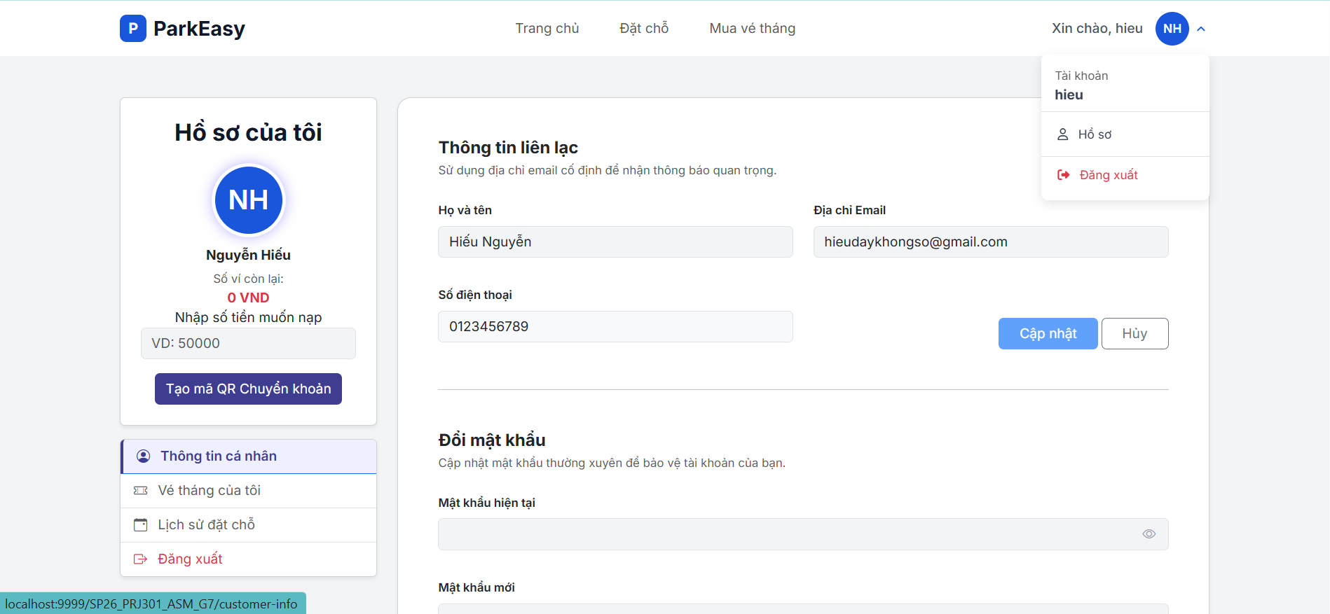 | 6 | Update Profile | Manage and edit personal information, including contact details (phone, email) and vehicle information (license plate, vehicle type). | |