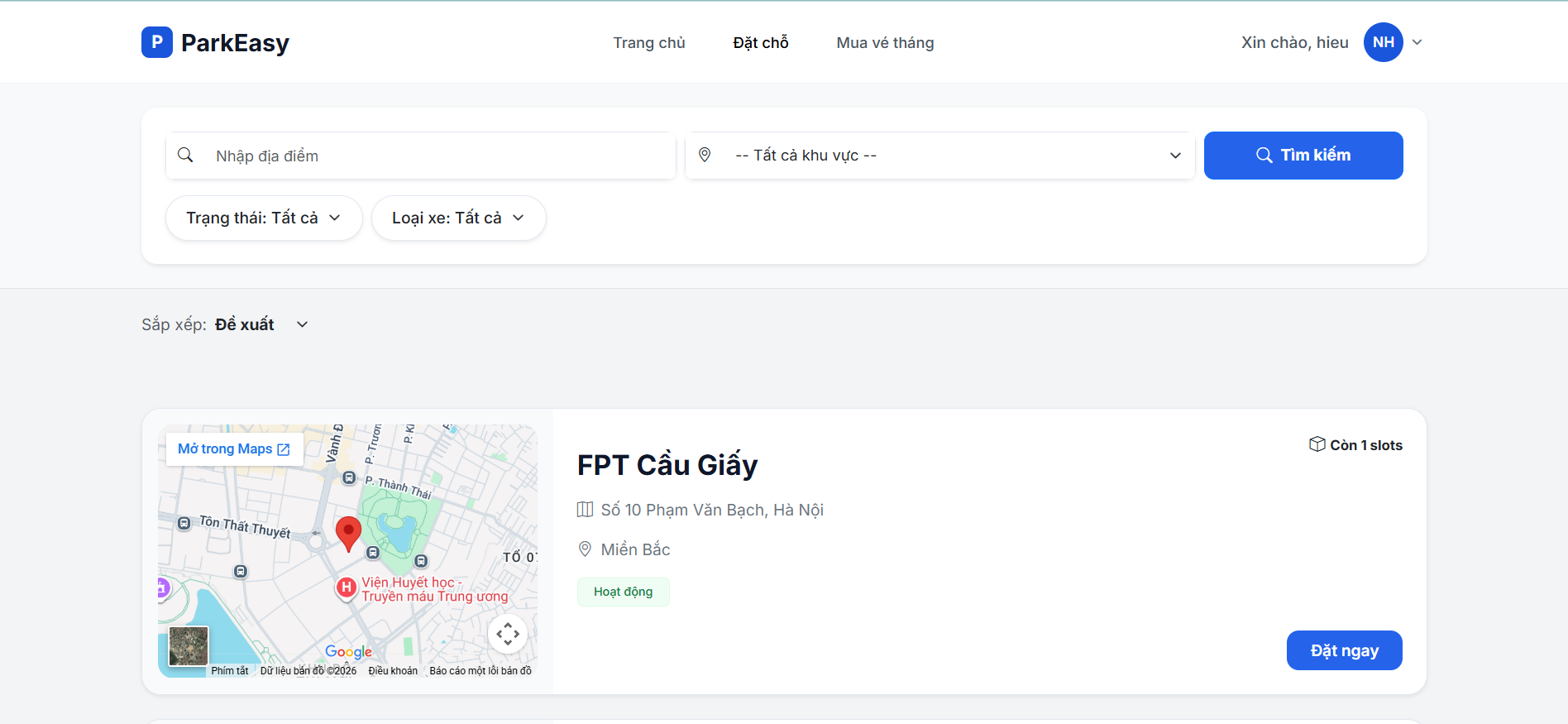 | 4 | Search Sites | Booking | Users can search for available parking sites by name, location, or region (North, Middle, South). |