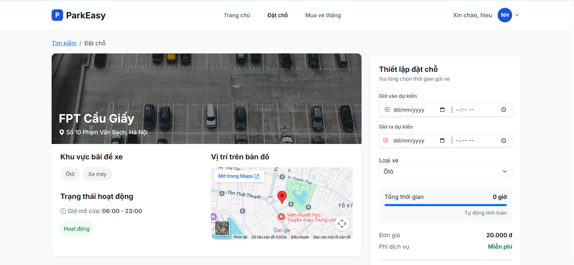 | 4 | Booking Hourly Card | Book a short-term parking slot for a specific date and time. Note: The booking duration must be at least 1 hour to be valid. | |