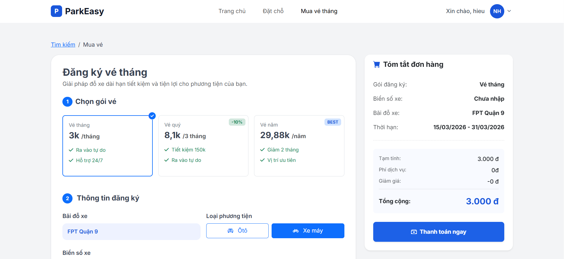 | 24 | Register monthly subscription | Apply for a monthly parking pass by providing vehicle details and personal information. |