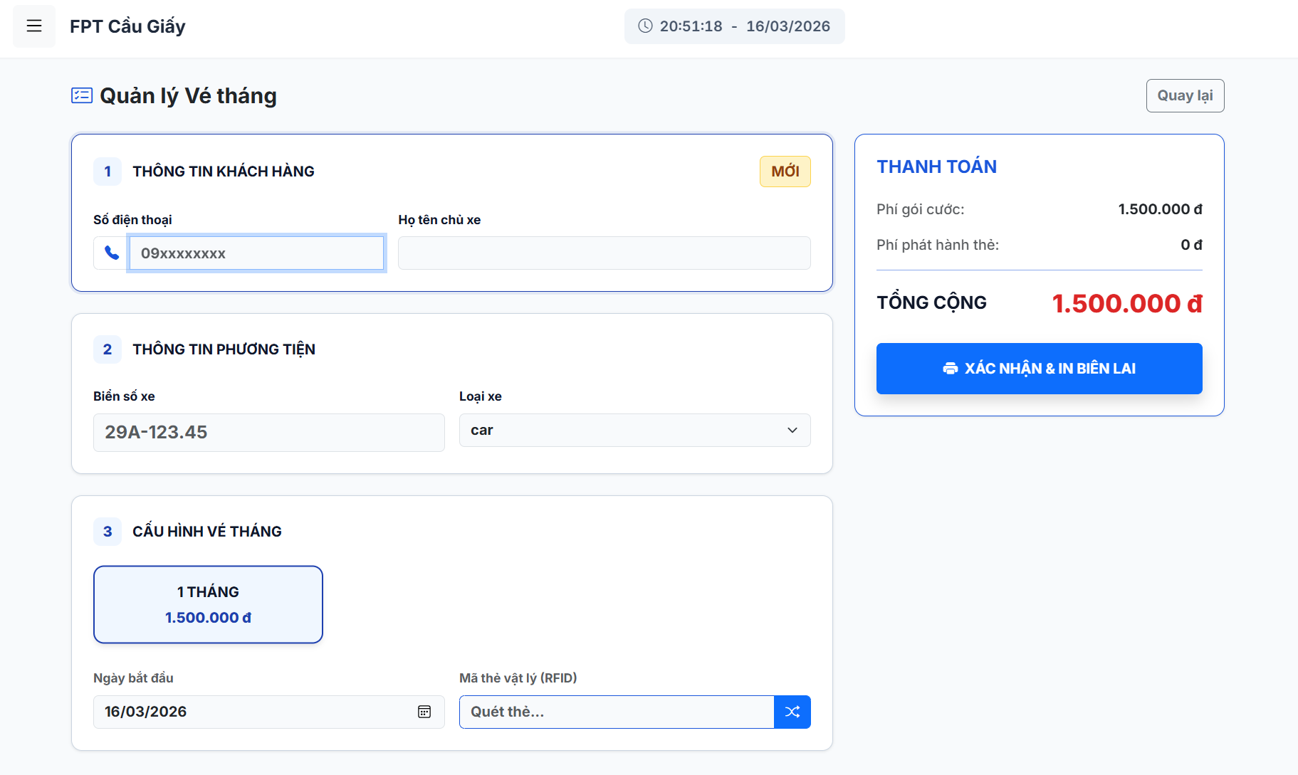 | 7 | Calculate Fee & Process Payment | Automatically calculate parking fees based on duration and price configurations (hourly, booking, or subscription), display the fee modal, and process the checkout transaction. | |